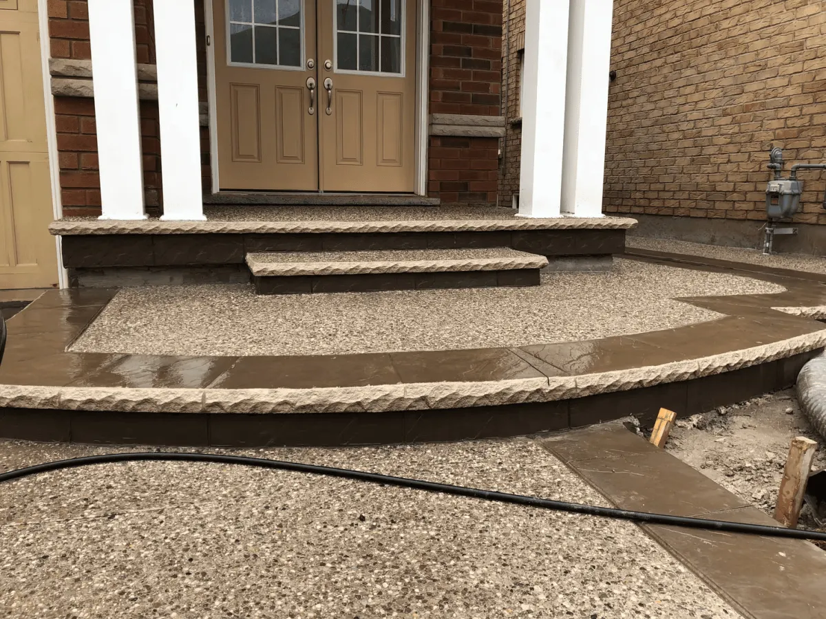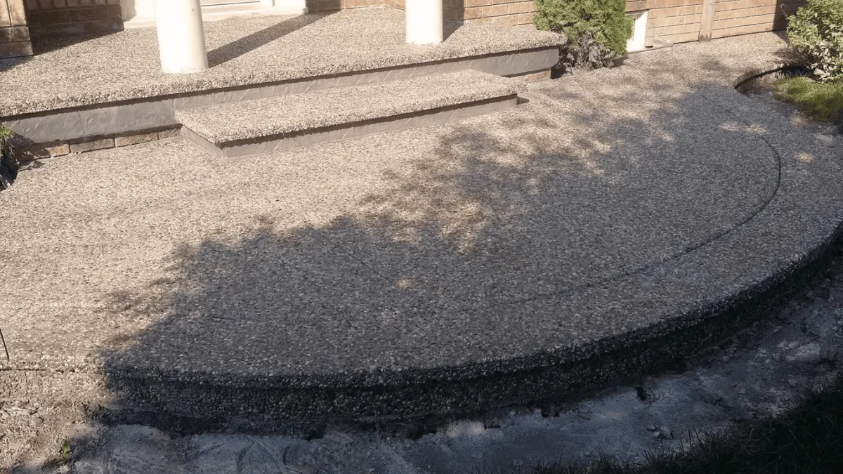 Exposed aggregate has more texture than smooth concrete, but it shouldn’t feel sharp when it’s finished properly. Most homeowners are comfortable walking on it barefoot, especially on patios. If you want a smoother feel, we can recommend an aggregate blend/finish that’s more “foot-friendly” for your space.