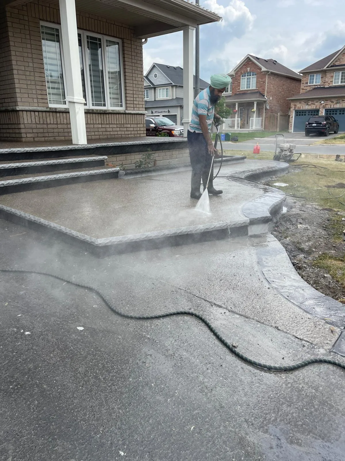 We hired Rightway Concrete Three years ago to do Exposed Aggregate & Stamped Driveway and all around the house and was really impressed with Shamsher and his Team. Now we hired Them back to seal our Driveway and all around the house again. Job well done. We highly recommend Right Way Concrete to anyone looking for quality concrete work.